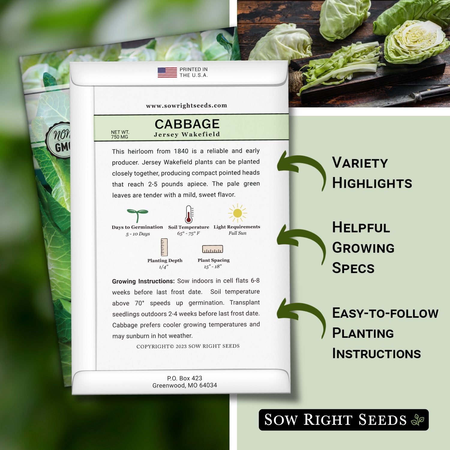 Seed packet contains 750mg (about 225 seeds). Start Cabbage seeds indoors for early blooms - Large, premium seed packets give instructions on how to grow and when to plant outdoors.