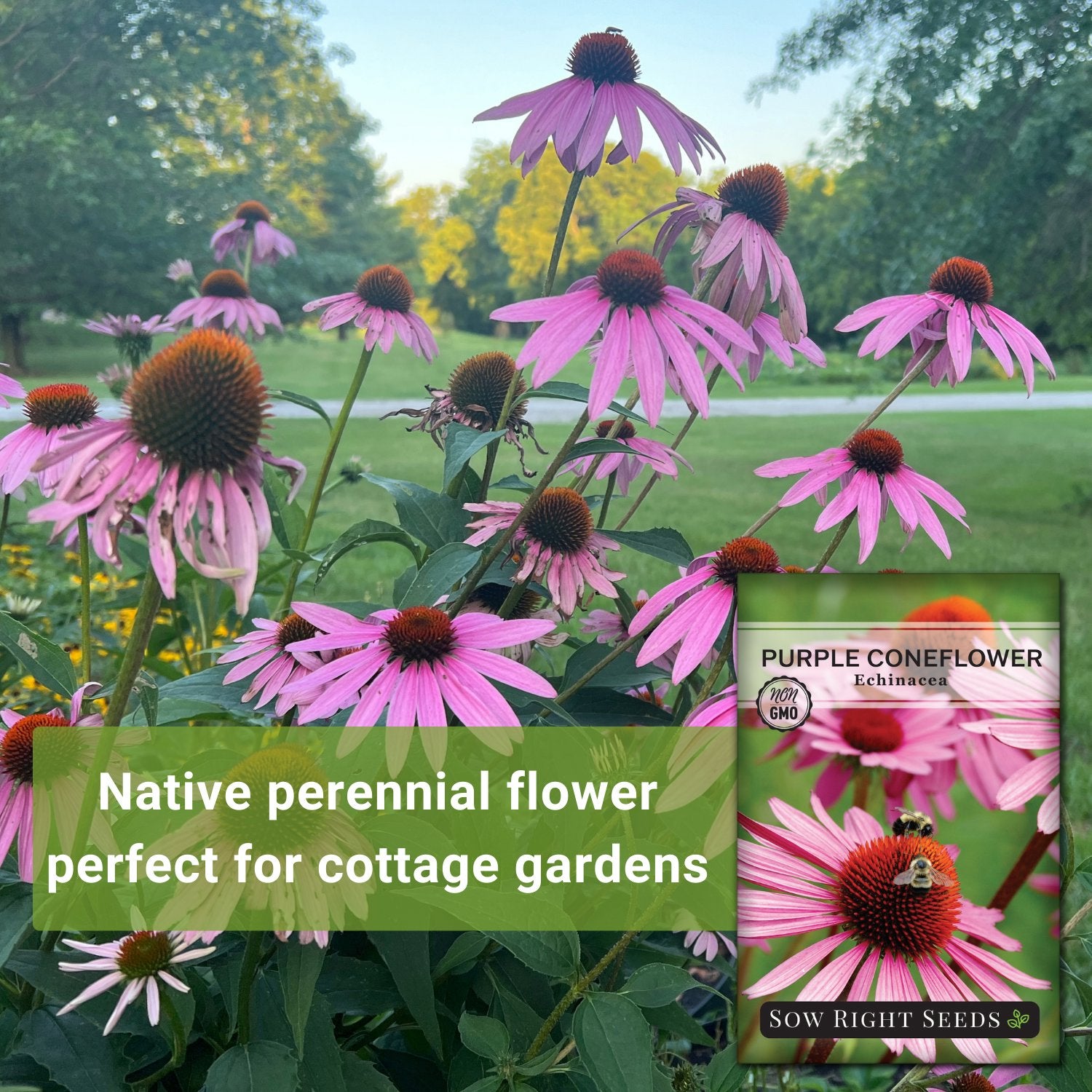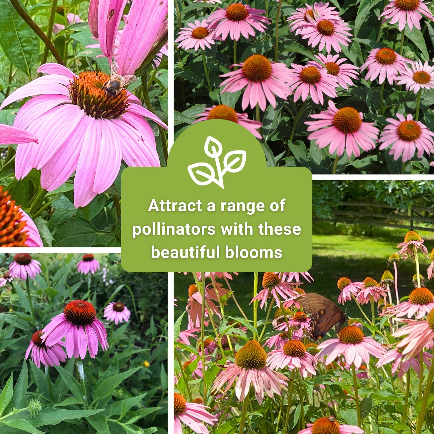 Long lived perennial, known as Purple Coneflower (Echinacea purpurea), that produces large beautiful flowers for an extended growing season. Plants grow to 24 to 30 inches tall and are drought tolerant. Coneflower plants look great in a mass planting, and also do well in pollinator gardens. Start echinacea seeds indoors for early blooms.