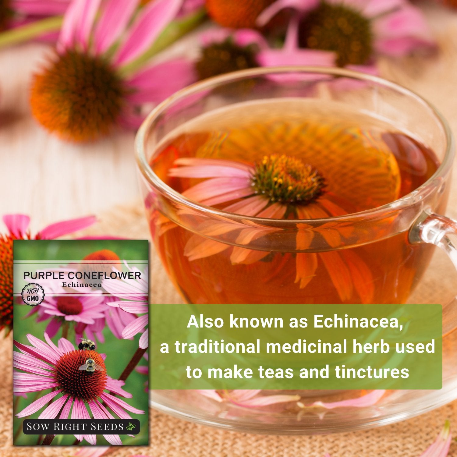 Echinacea tea is thought to boost the immune system and is used to help with coughs, colds, and internal infections. Small daily doses appear to work better than a one-time large amount to reduce symptoms of sore throat, cough, and fever.