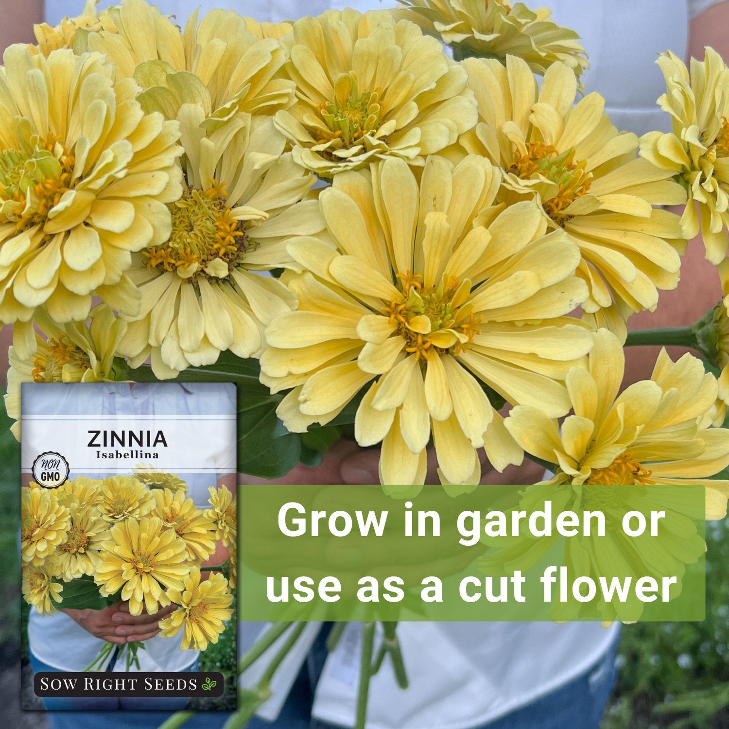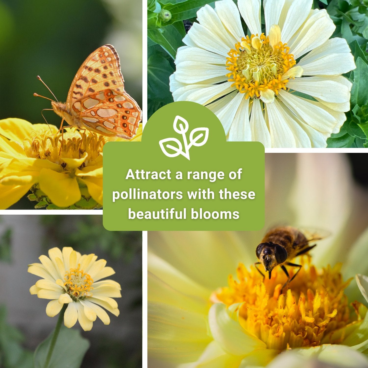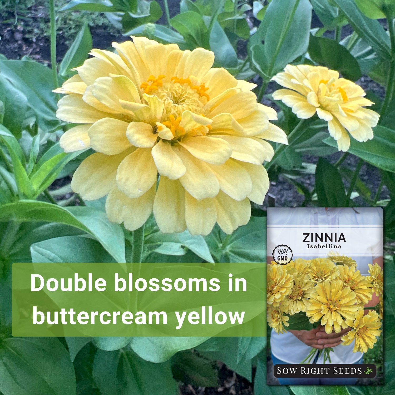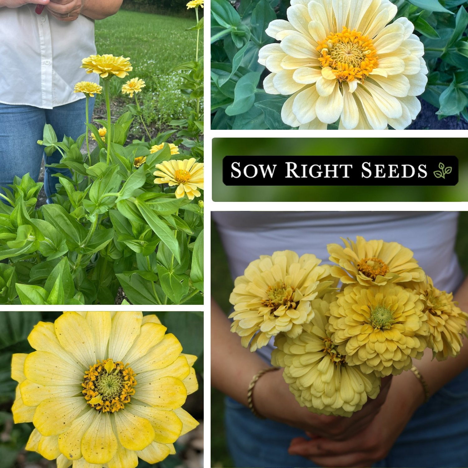 This variety of Zinnia is an easy-to-grow annual that produces buttercream yellow blooms. Its elegant double flowers create a romantic display in the garden and make for stunning bouquets.