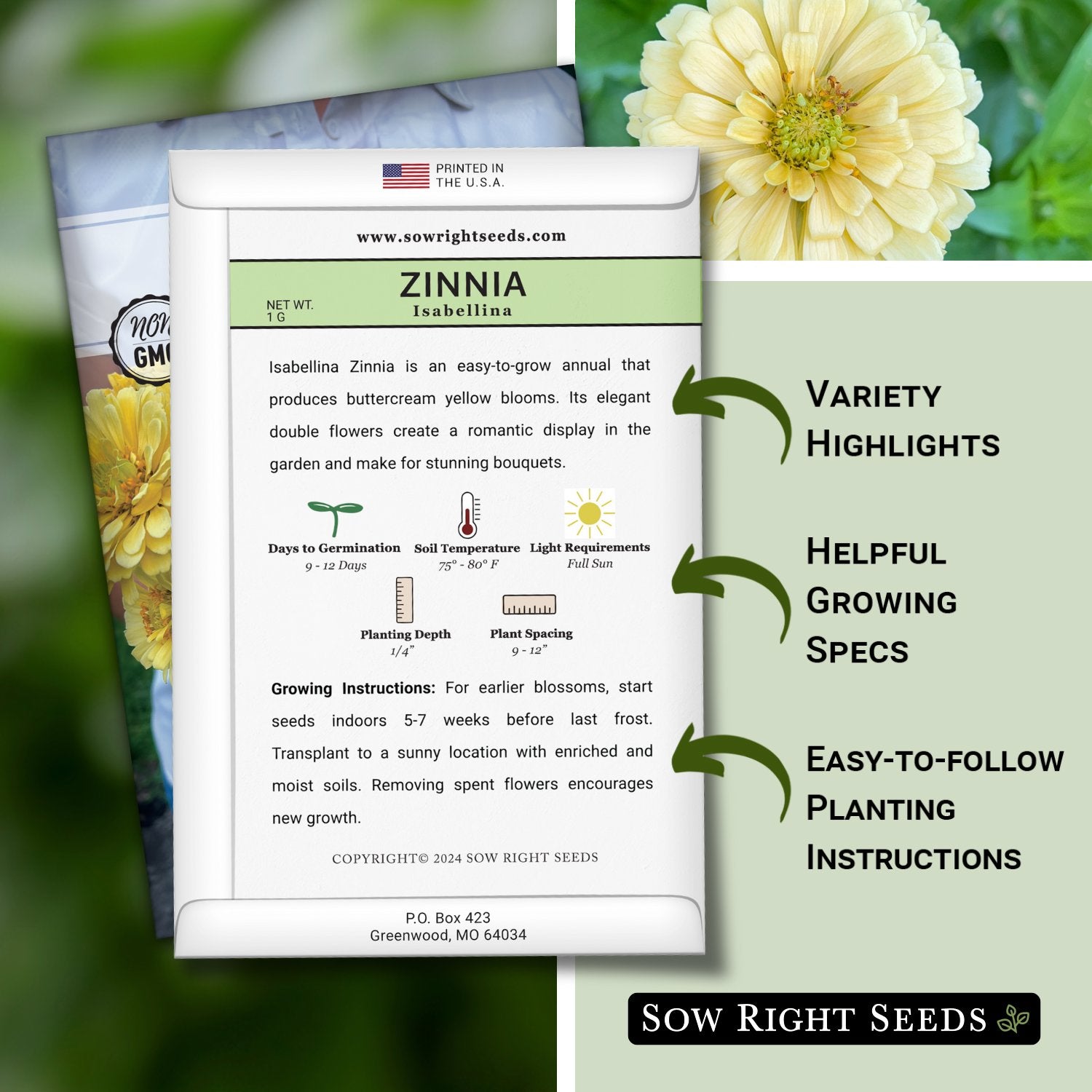 Seed packet contains 500mg (about 125 seeds). Start Zinnia seeds indoors for early blooms - Large, premium seed packets give instructions on how to grow and when to plant outdoors.