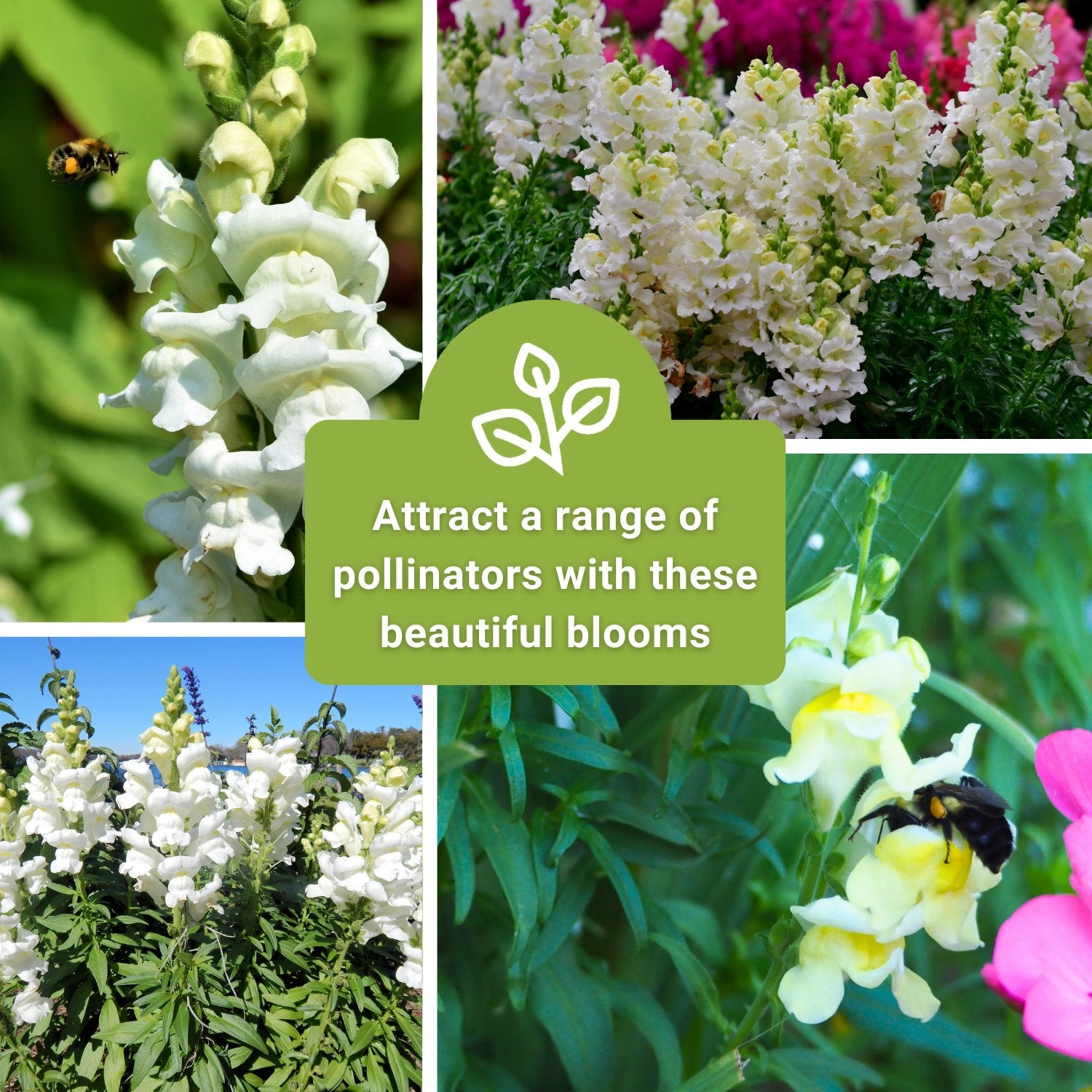 white snapdragon seeds attract a range of pollinators with these beautiful blooms